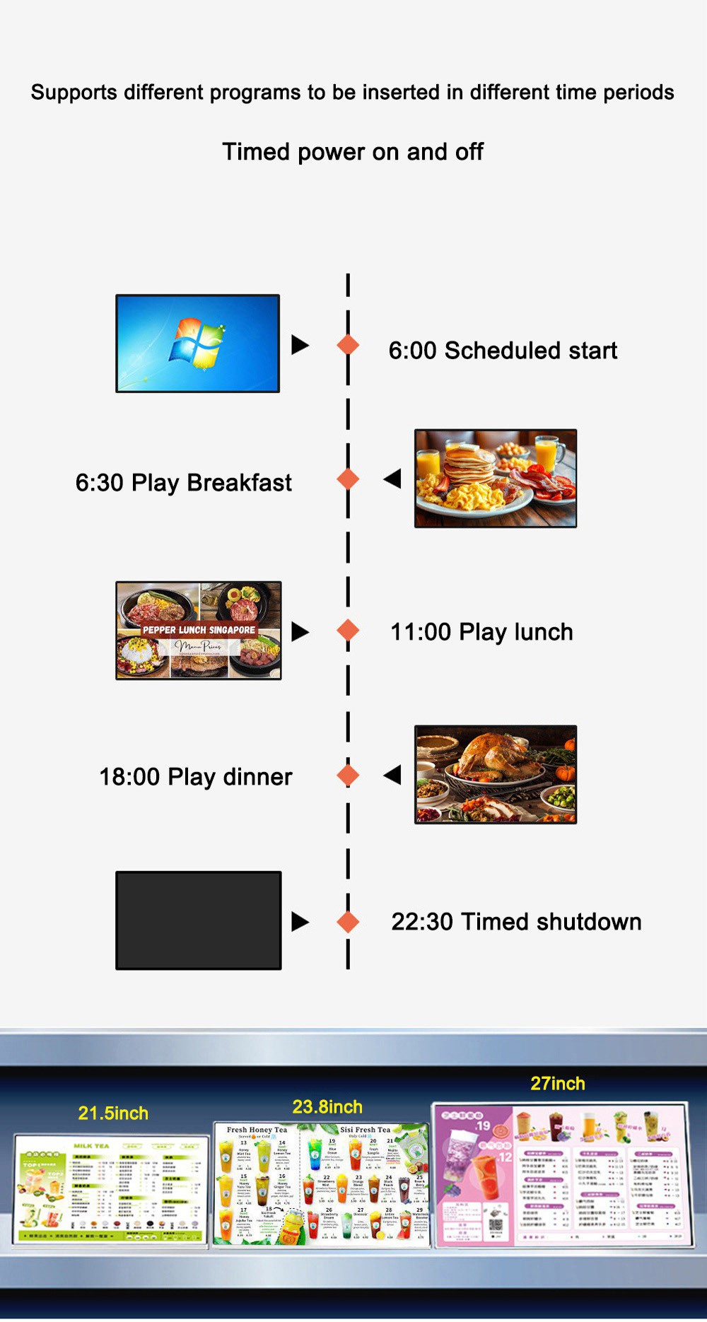 Diverse Size: Screen sizes cover 21.5/23.8/27inch, Touchscreen Optional Advertising Signage for F&B Chains (Milk Tea Shop/Restaurant/Bar)