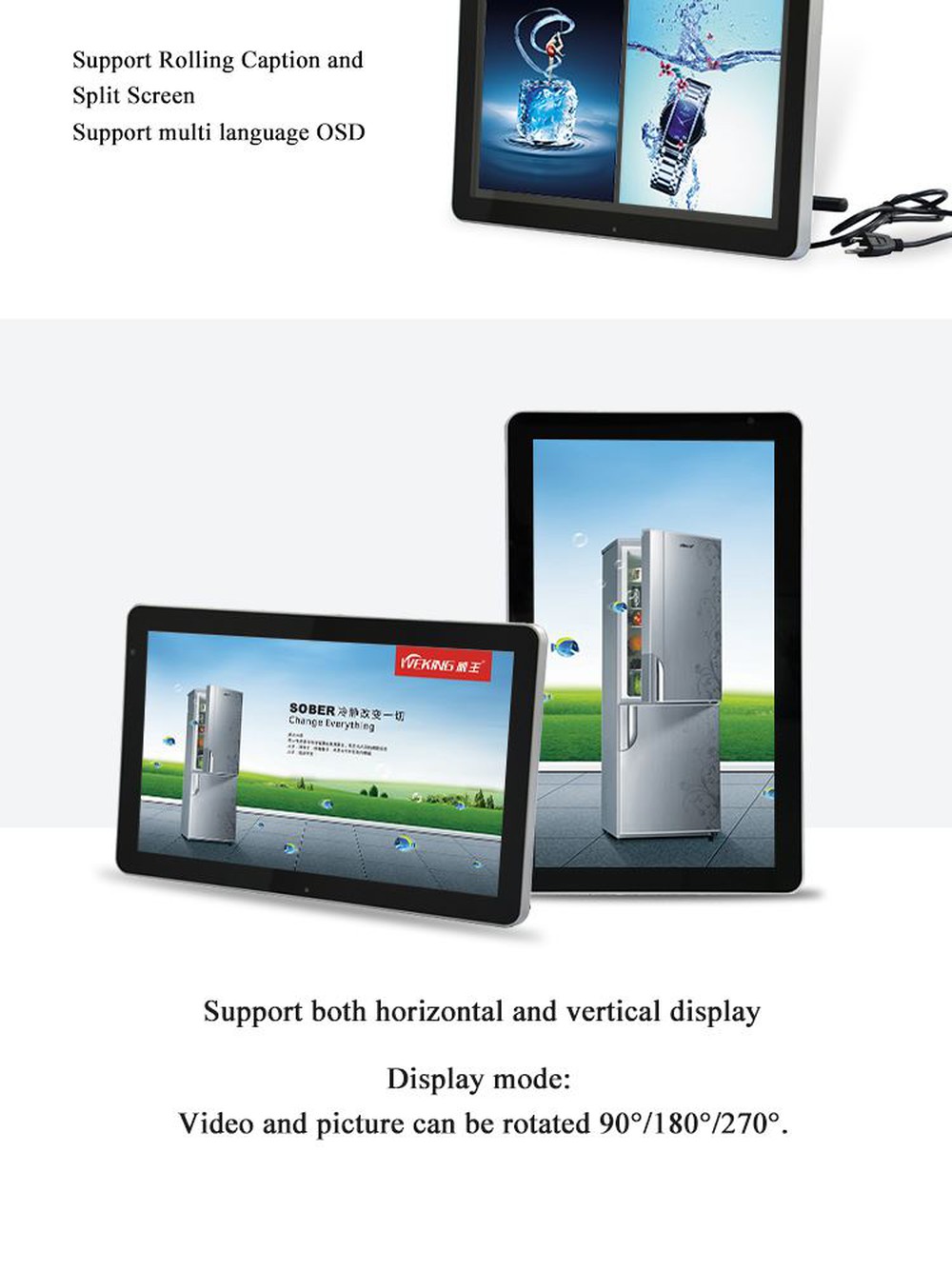 | The above same functions can also be applied to 42"-65" ad players or an HD-MI media player box |
