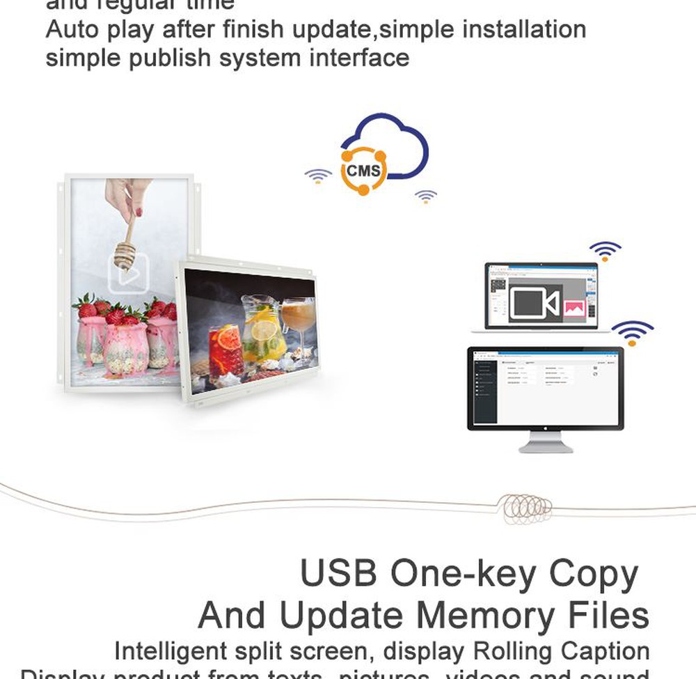 The company currently has several outstanding partners who can provide strong support to the domestic Android Advertising Display 15'' CMS Screens, vertical advertising network, advertising products industry. We have gradually formed the spirit of sustainable management and striving for upstream. We explore our own characteristics and advantages, especially to refine our mature experience in time to form an advanced management system or theory. The products sold by our company are developing in the direction of specialization and have achieved a qualitative leap forward on the original basis. We recruit talented people with an open and tolerant mind, encourage innovation and tolerance of failure, and recognize and respect differences and individuality.